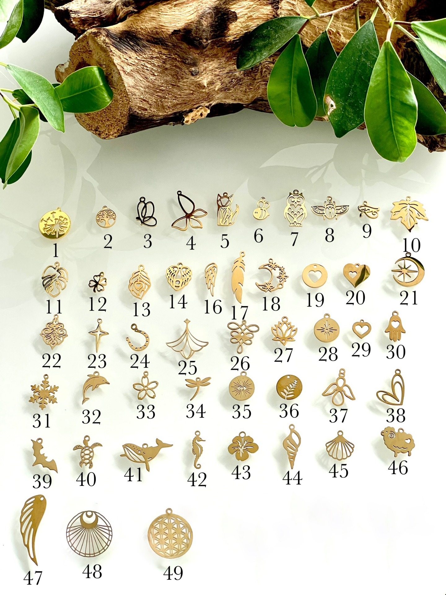 Pendentif personnalisable : vous pouvez remplacer le pendentif (selon disponibilités) en choisissant, sur la dernière photo, le modèle numéroté qui vous plaît, puis sélectionnez le numéro correspondant dans le menu « Pendentif ». Si vous souhaitez recevoir le bracelet comme sur la photo, choisissez cette option.