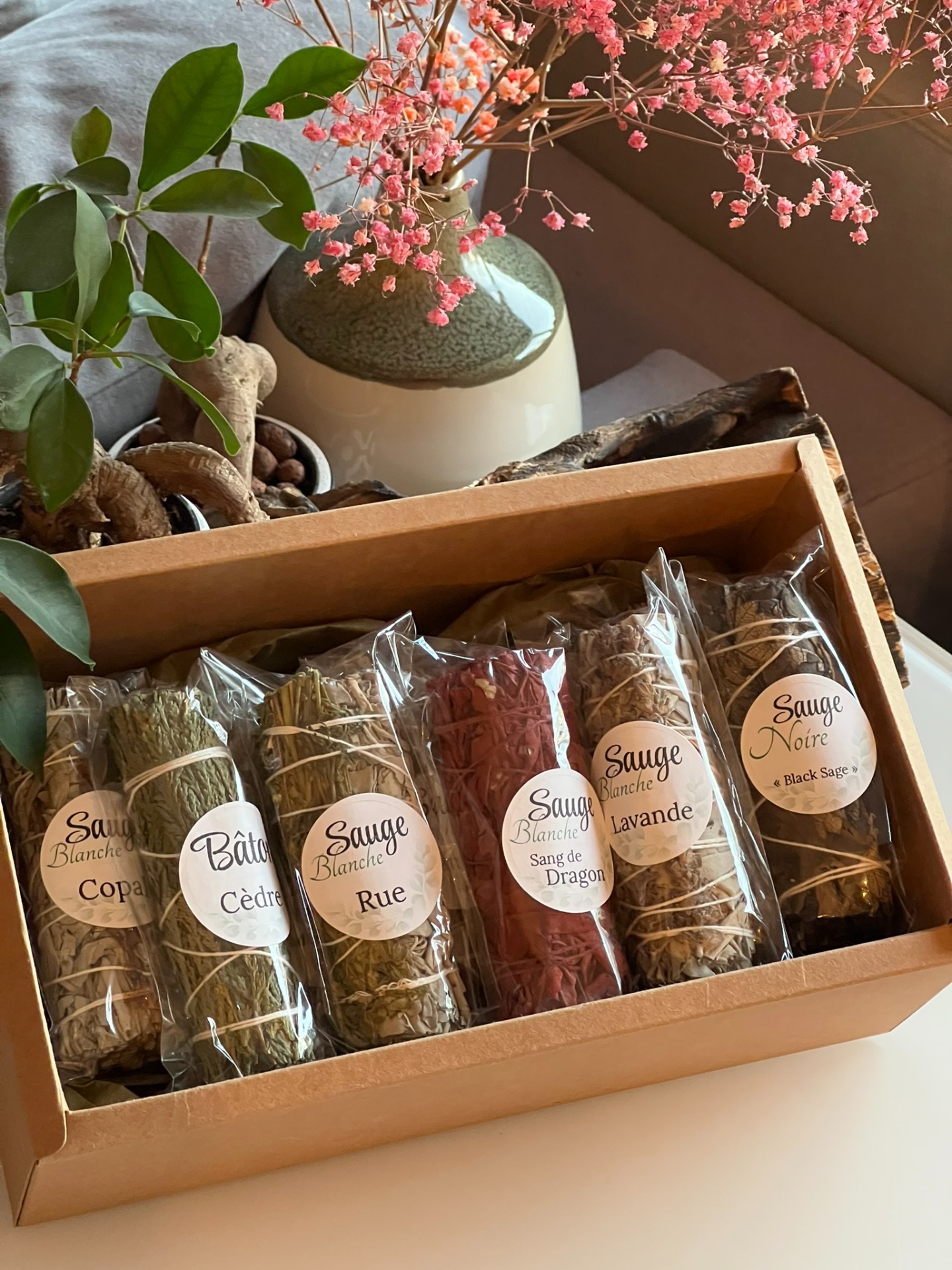Un coffret complet, pensé comme un outil énergétique, pour purifier, harmoniser et élever les énergies d'un lieu, d'un objet ou de soi-même.