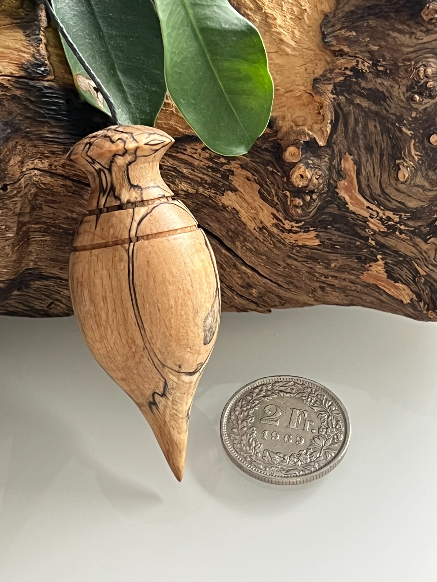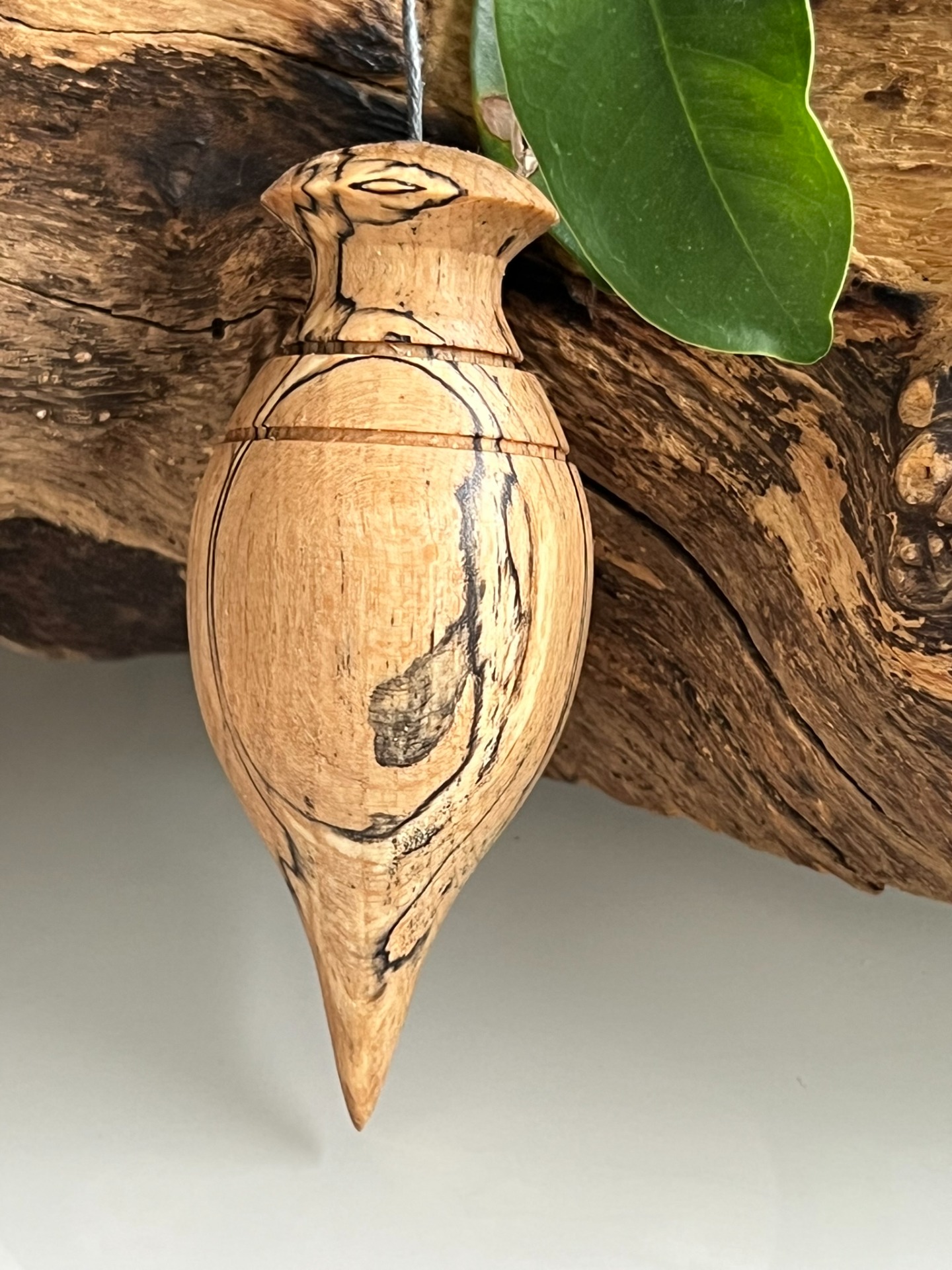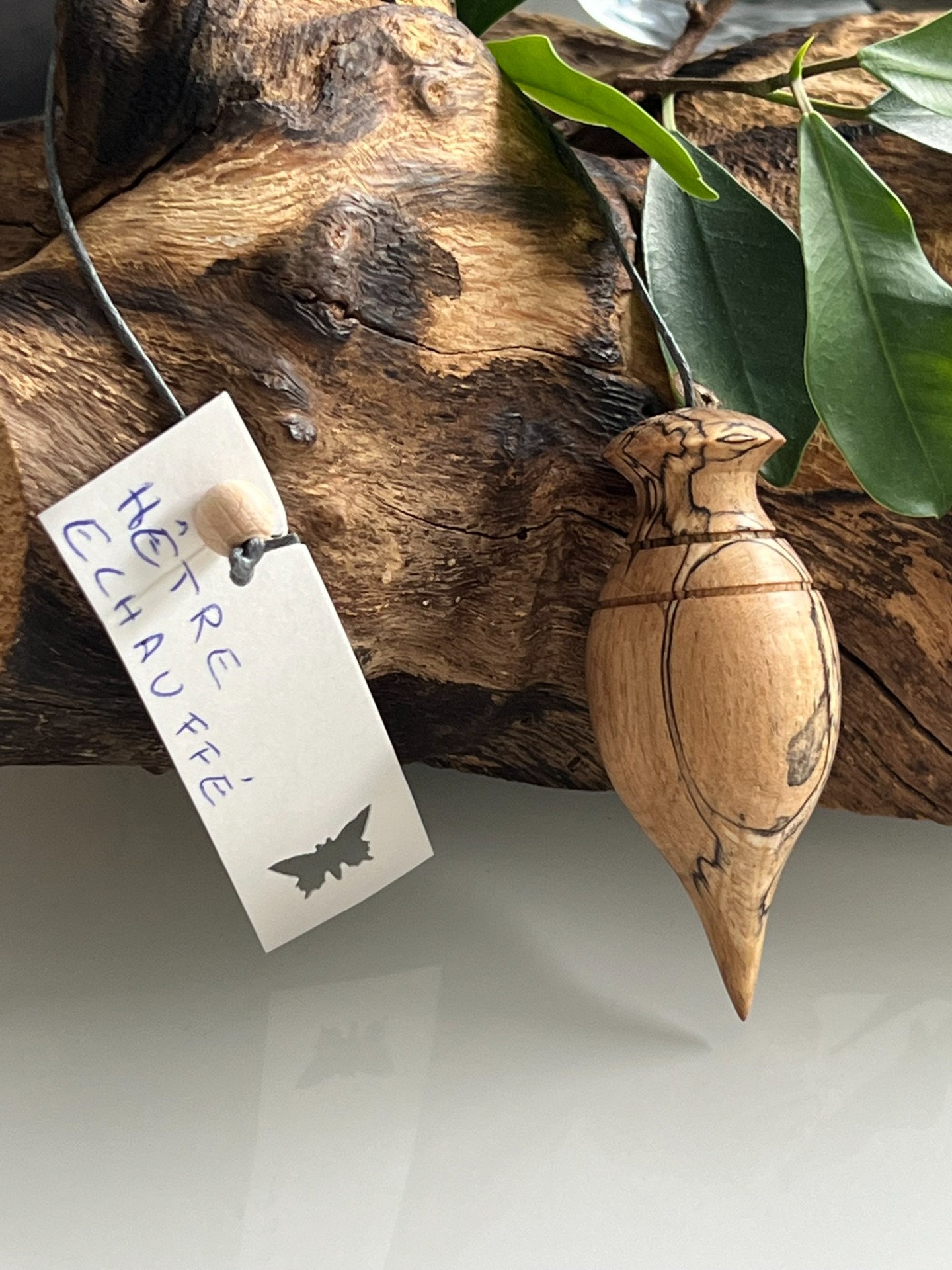 Pendule en forme d'« amphore spiralée », tourné dans le bois de Hêtre échauffé.