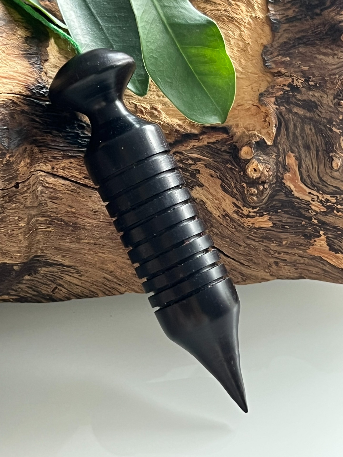 L'Ébène est un bois rare et puissant, symbole de protection et de maîtrise. Sa vibration profonde favorise l'ancrage, la stabilité émotionnelle et la concentration.