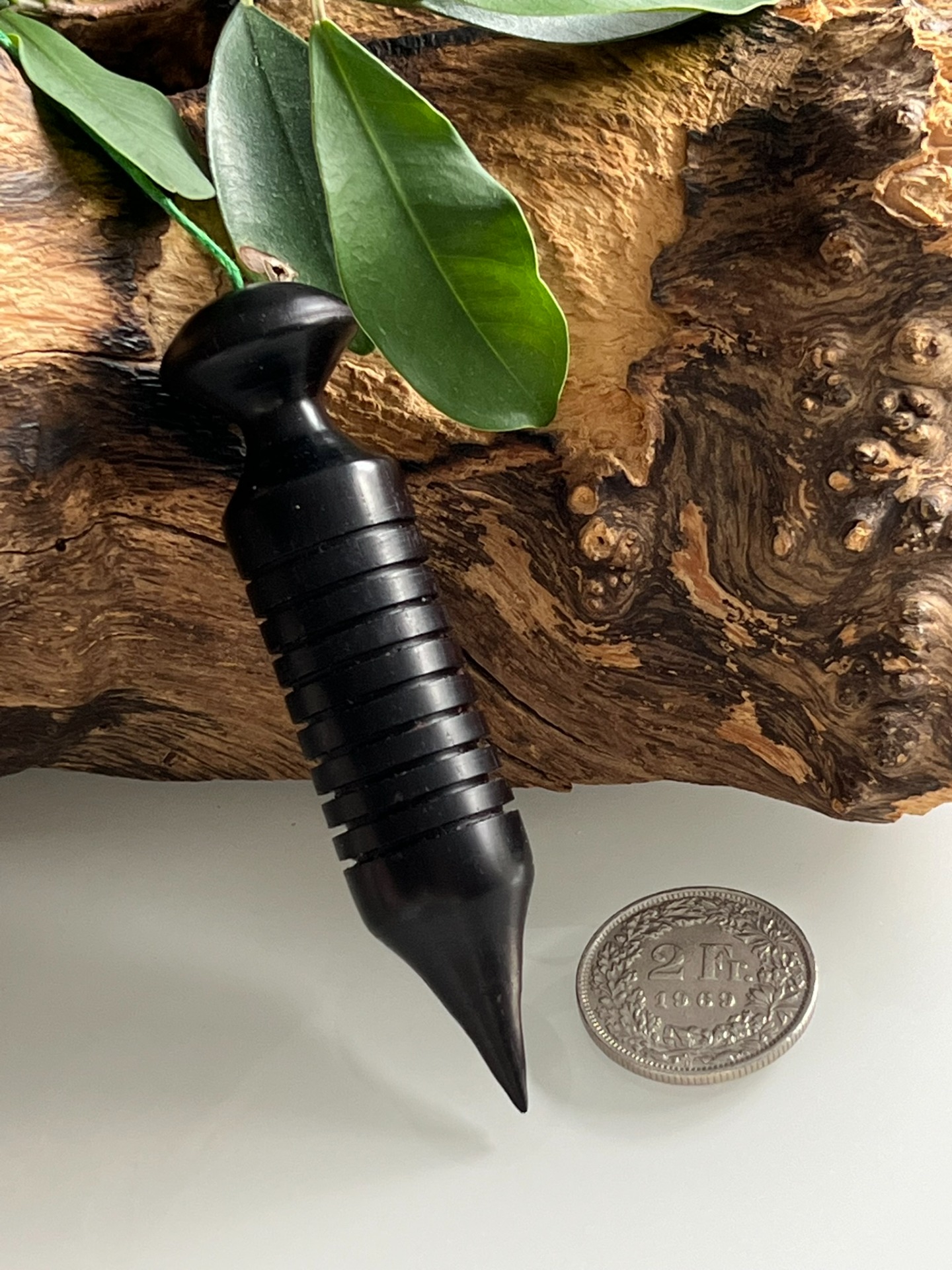 En radiesthésie, il se distingue par sa précision et sa sensibilité aux flux énergétiques, offrant des réponses nettes et fiables. Son énergie dense et absorbante en fait également un excellent outil pour les praticiens recherchant un pendule à la fois élégant, protecteur et d'une grande justesse vibratoire.