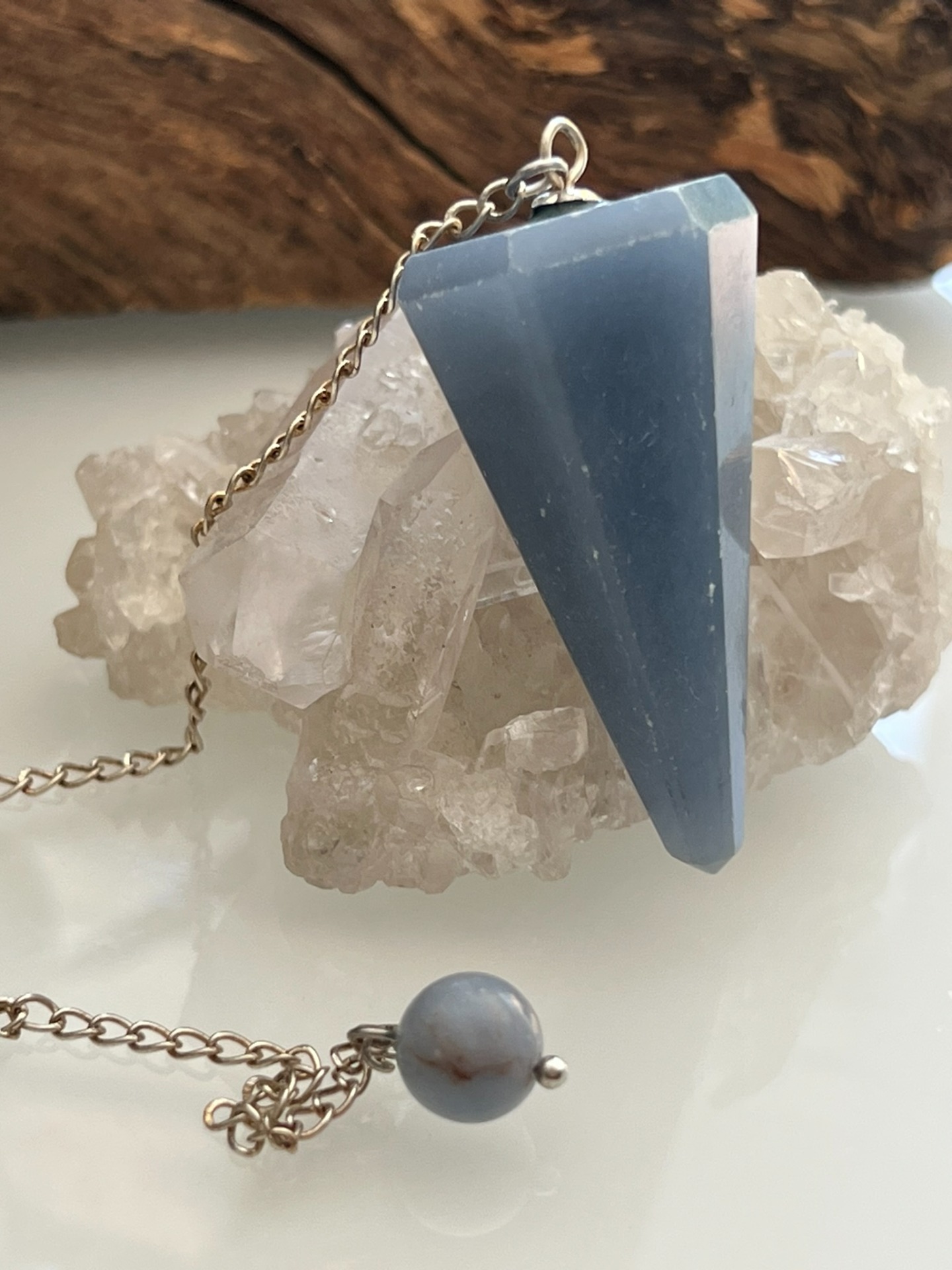 En radiesthésie, ce pendule diffuse une vibration délicate et lumineuse. Il est particulièrement adapté aux recherches liées à la spiritualité, à la guidance et à l'harmonisation émotionnelle.
