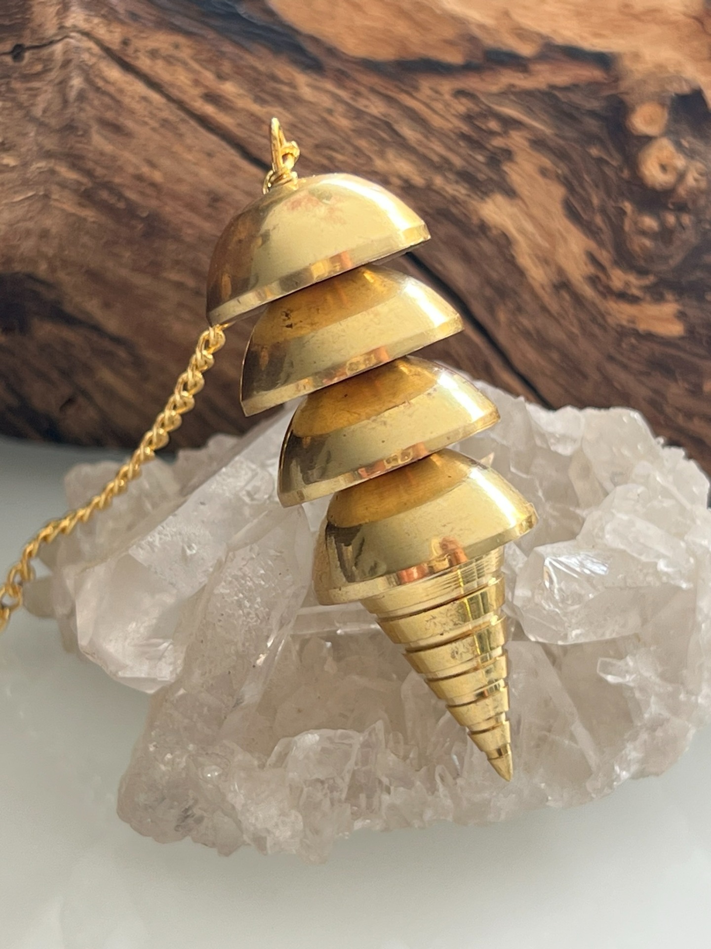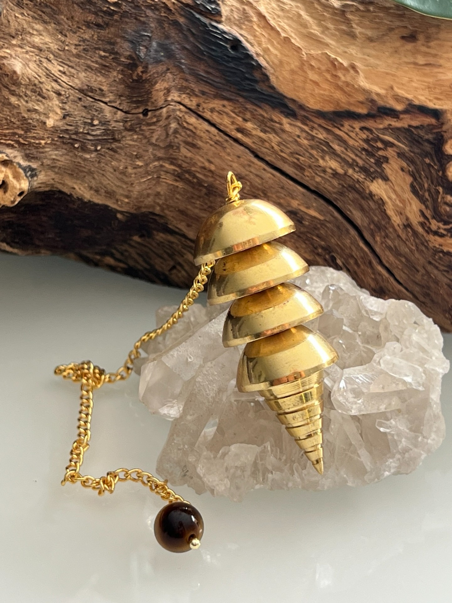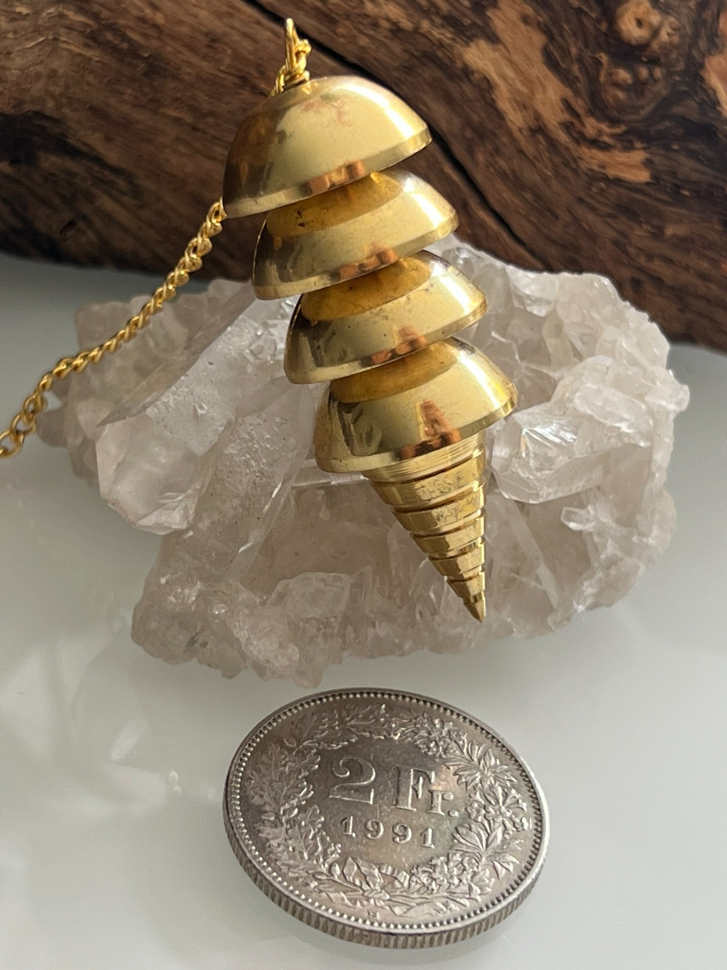 Métal doré de fluidité et d'énergie en mouvement — ce pendule agit comme un véritable amplificateur vibratoire. Sa forme spiralée favorise la circulation des énergies, aide à dissiper les blocages et accompagne les recherches en radiesthésie avec une grande sensibilité. Idéal pour travailler sur l'harmonisation, il apporte des réponses précises tout en stimulant la régénération et la clarté intérieure.