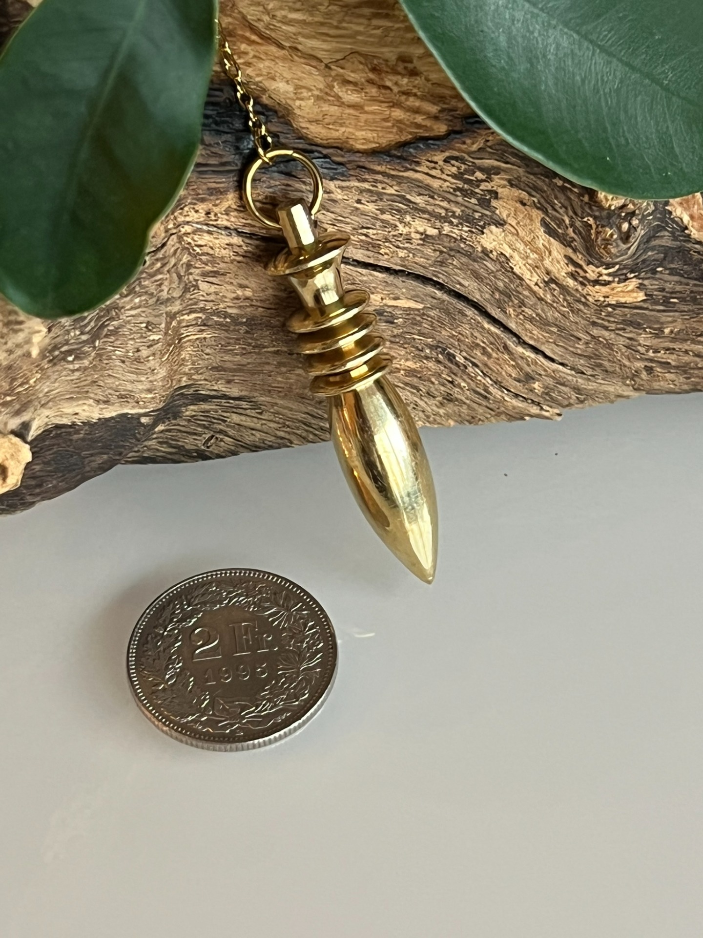 Ce pendule se distingue par sa structure composée d'anneaux superposés, qui favorisent la circulation et l'amplification de l'énergie. La pointe permet une lecture précise, tandis que les anneaux agissent comme des régulateurs vibratoires, rendant les réponses à la fois claires et harmonisées. Il est particulièrement adapté aux travaux de radiesthésie énergétique, à l'harmonisation des chakras, aux recherches subtiles et à l'accompagnement des soins énergétiques.