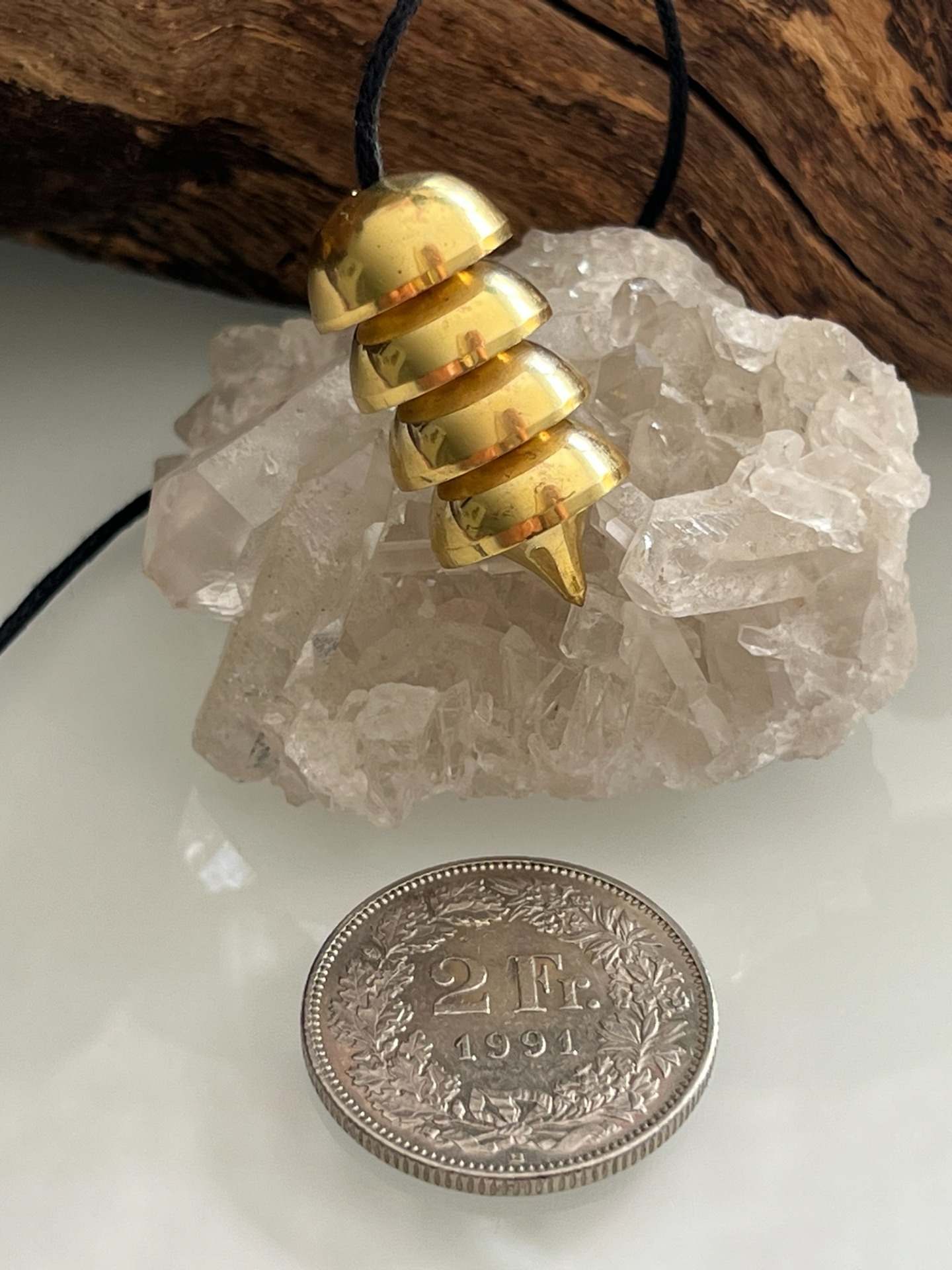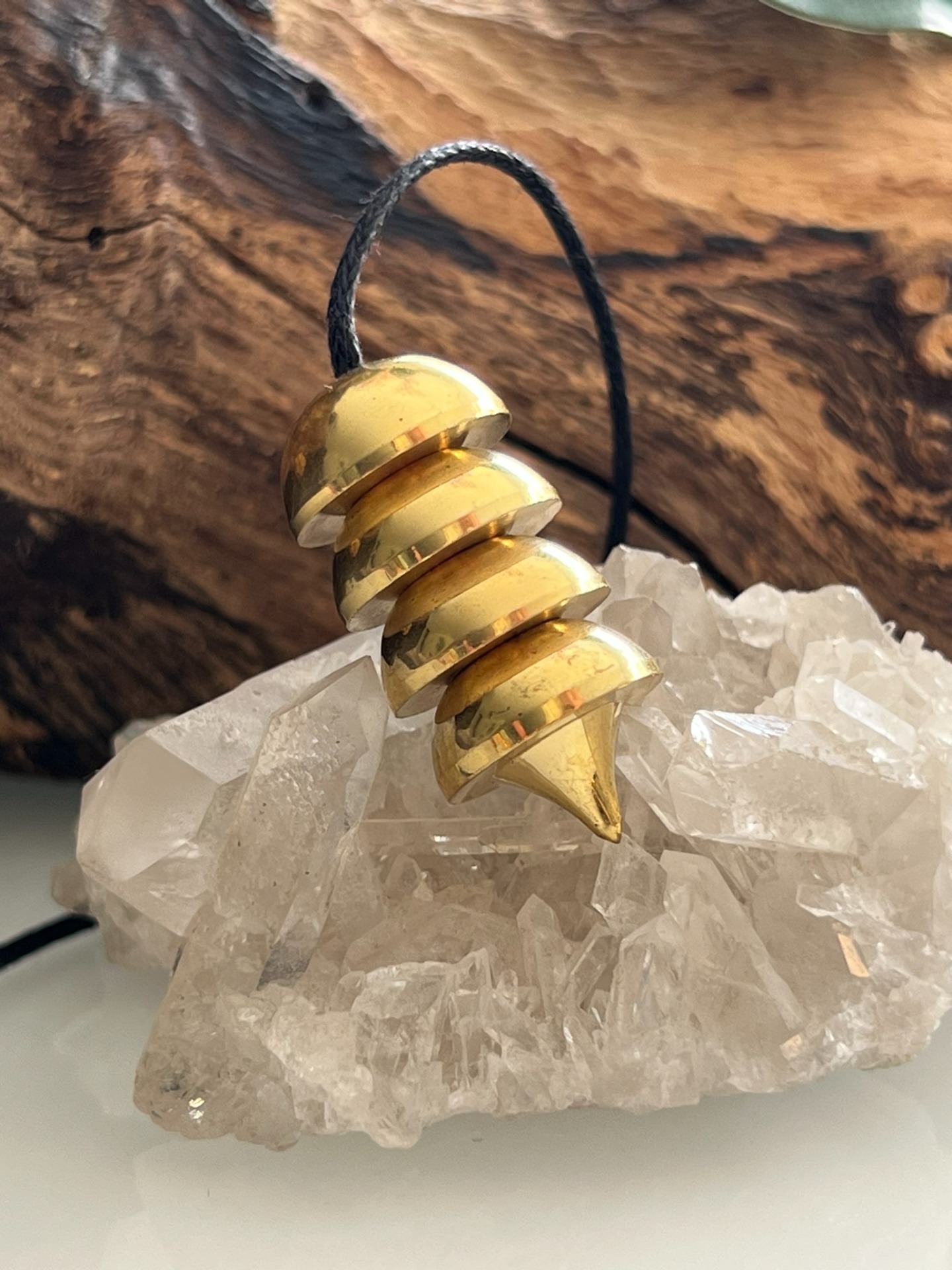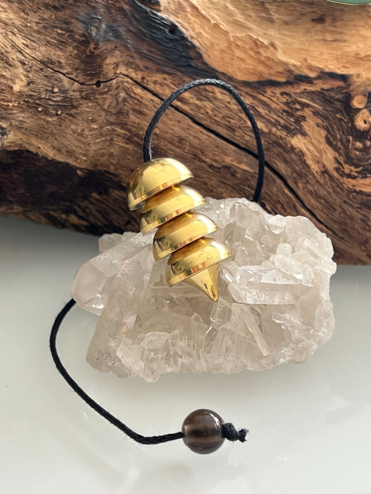 Chaînette en coton ≈ 20 cm • équilibre soigné • chaque pièce est purifiée et harmonisée à son arrivée • chaînette et boule d'extrémité remplacées et adaptées selon la vibration du pendule.